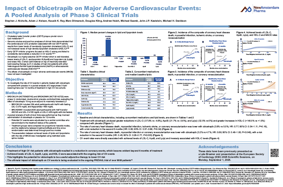 Impact of Obicetrapib on Major Adverse Cardiovascular Events: a Pooled Analysis of Phase 3 Clinical Trials